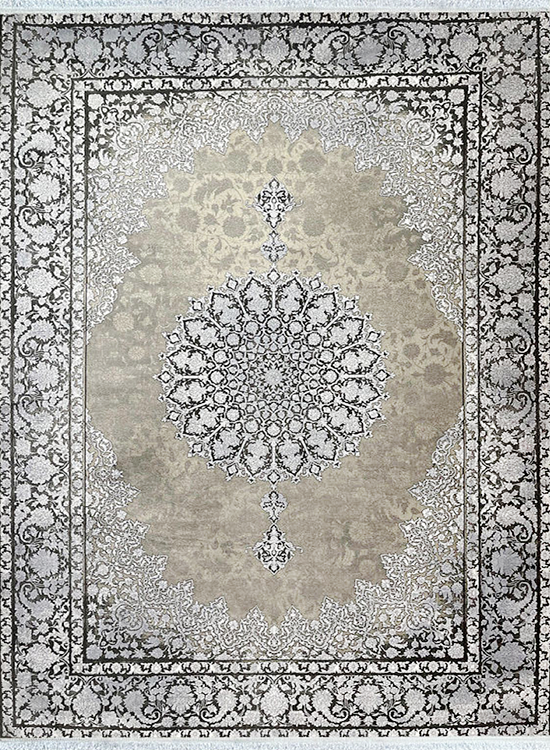 فرش مهدیان 700 شانه کد 70037 زمینه دودی-نقره ای (برجسته)
