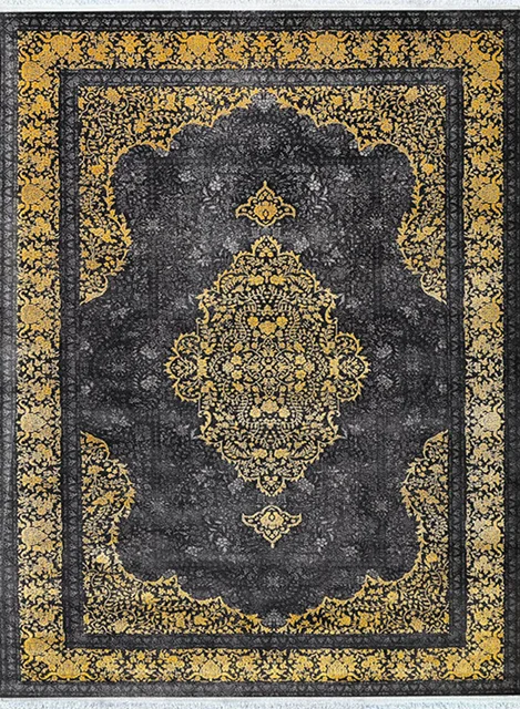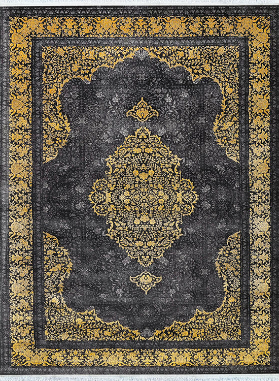 فرش مهدیان 700 شانه کد 70048 زمینه ذغالی-طلایی (برجسته)