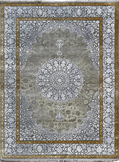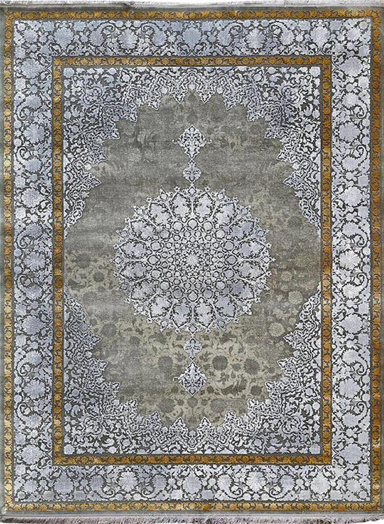 فرش مهدیان 700 شانه کد 70051زمینه دودی-نقره ای (برجسته)