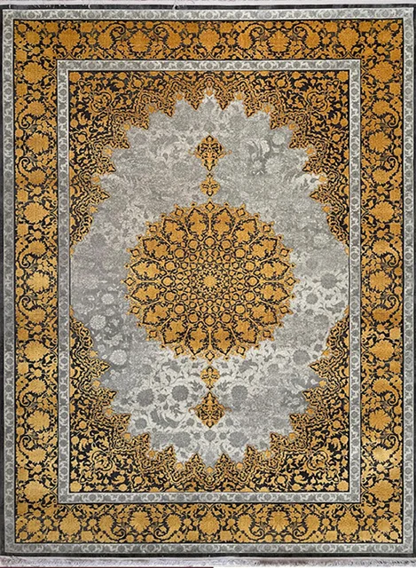 فرش مهدیان 700 شانه کد 70051 زمینه دودی-طلایی (برجسته)
