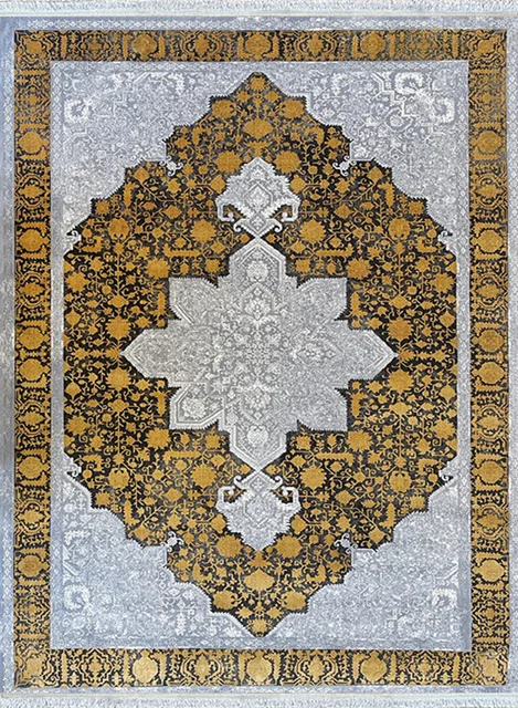 فرش مهدیان 700 شانه کد 70064 زمینه ذغالی-طلایی (برجسته)