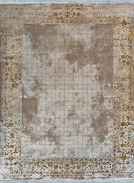 فرش مهدیان 700 شانه کد 71020 زمینه کرم-طلایی (برجسته)