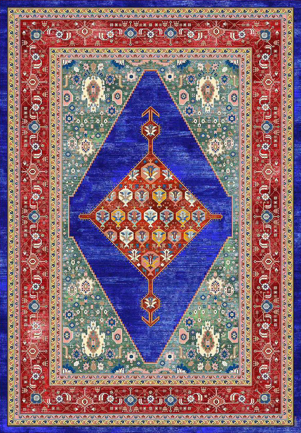 فرش مهدیان 700 شانه کلکسیون سنتی کد C1165 زمینه آبی (غیربرجسته)