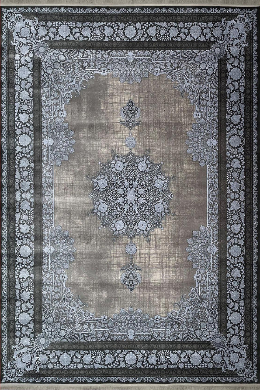 فرش مهدیان 700 شانه کلکسیون دینارسو کد 70005 زمینه دودی-نقره ای (برجسته)