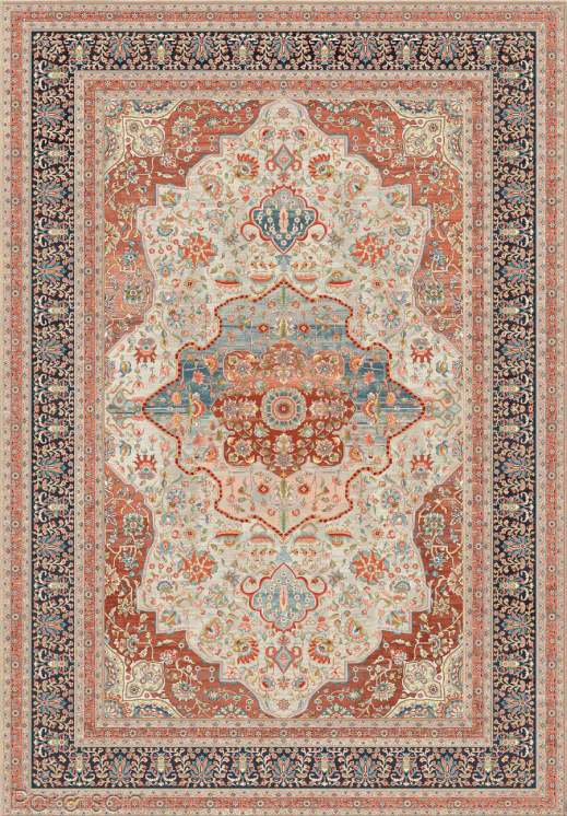 فرش مهدیان 700 شانه کلکسیون سنتی کد C1001 زمینه کرم (غیربرجسته)
