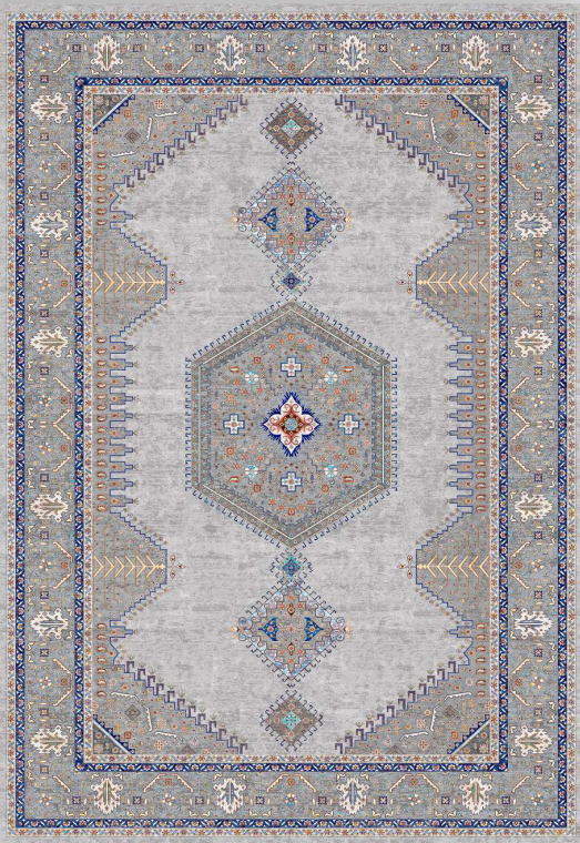 فرش مهدیان 700 شانه کلکسیون سنتی کد C1087 زمینه خاکستری (غیربرجسته)