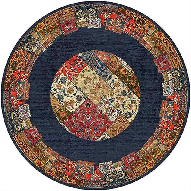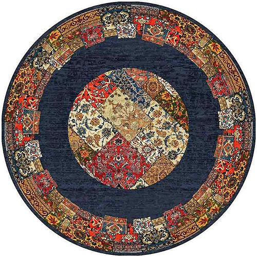 فرش کاشان گرد کلاریس 700 شانه کد 100510 زمینه سورمه ای (غیربرجسته)