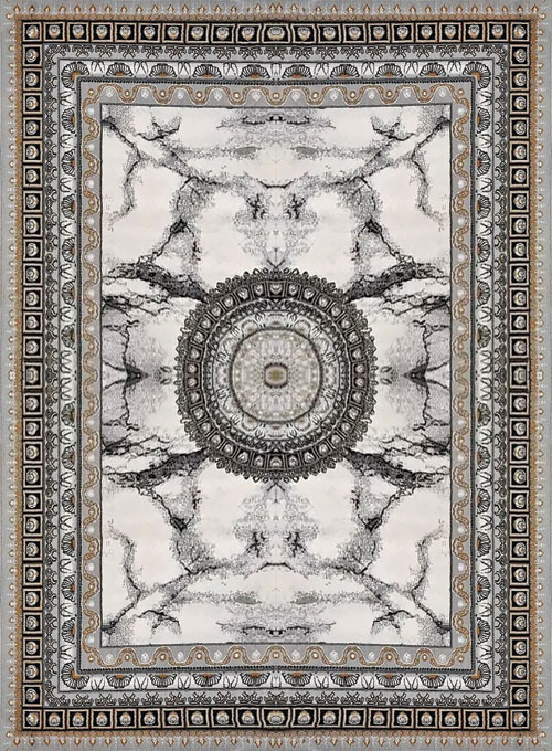 فرش کاشان 500 شانه طرح ایتالیا زمینه نقره ای (غیربرجسته)