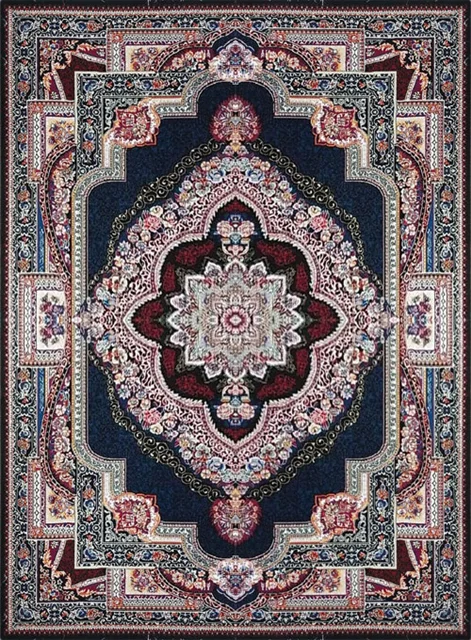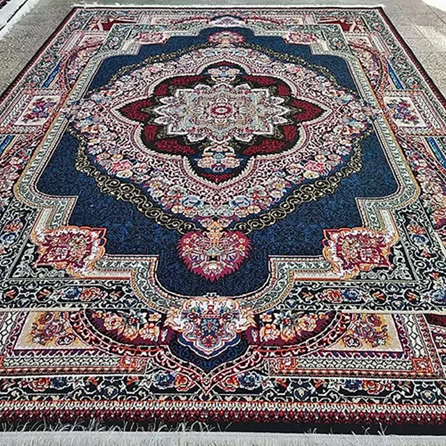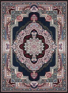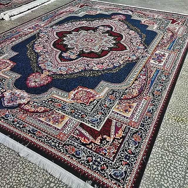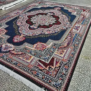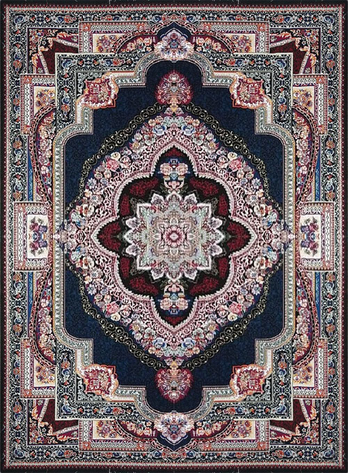 فرش کاشان 500 شانه طرح باغ معلق زمینه سورمه ای (غیربرجسته)