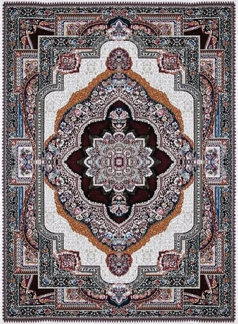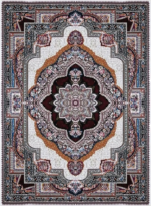 فرش کاشان 500 شانه طرح باغ معلق زمینه کرم (غیربرجسته)