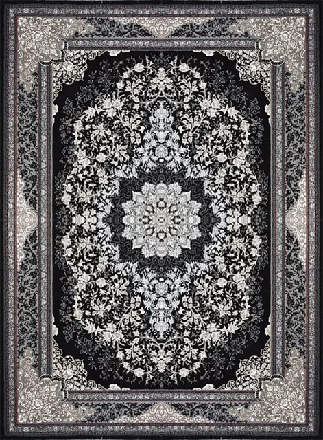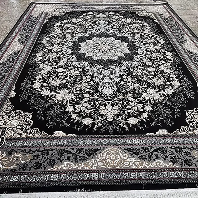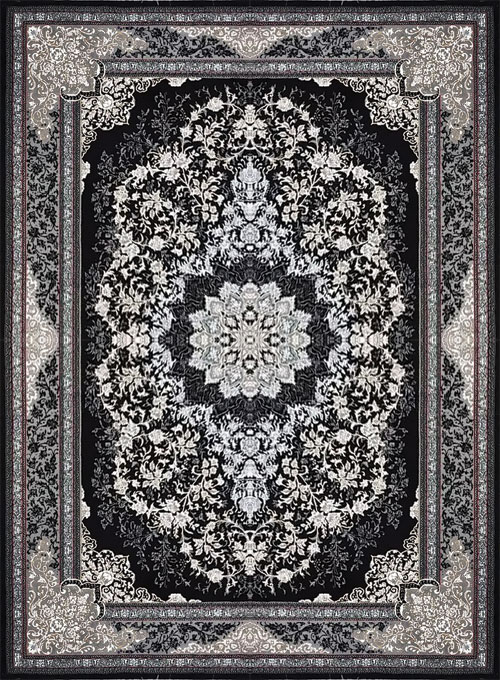 فرش کاشان 500 شانه طرح تندیس زمینه مشکی (غیربرجسته)