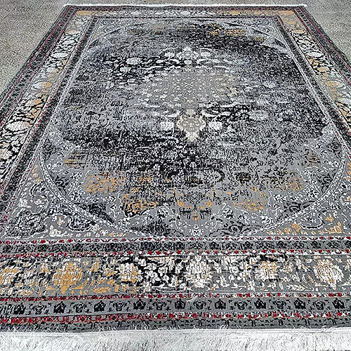 فرش کاشان 500 شانه طرح ثروت زمینه فیلی (غیربرجسته)