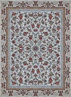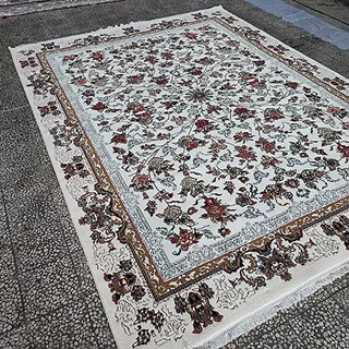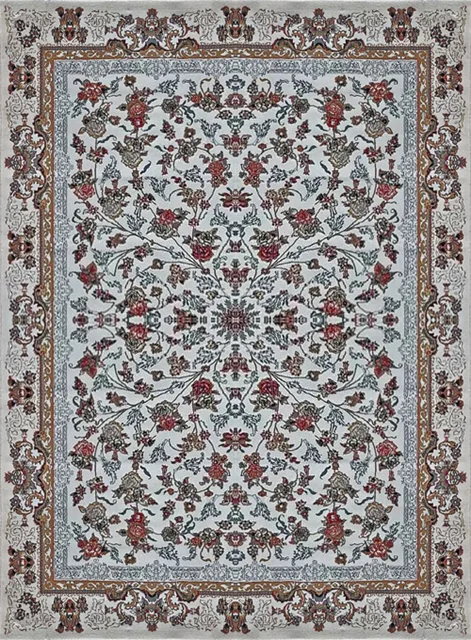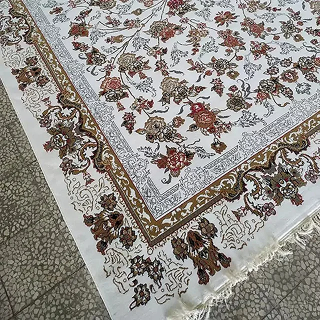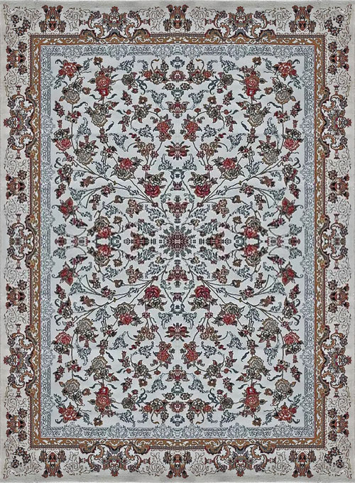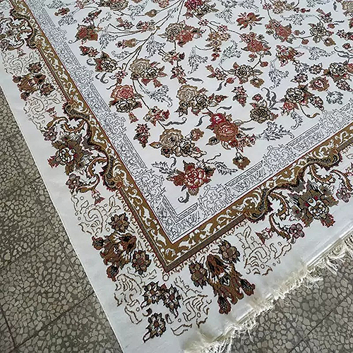 فرش کاشان 500 شانه طرح جانان زمینه سفید (غیربرجسته)