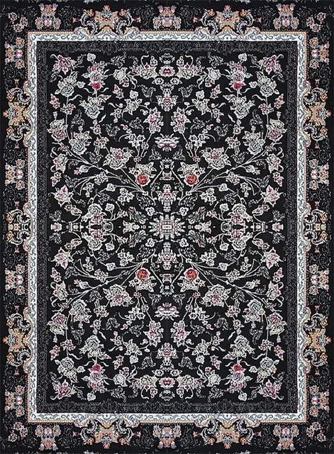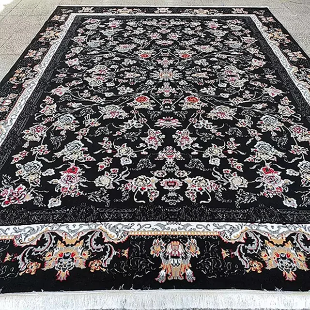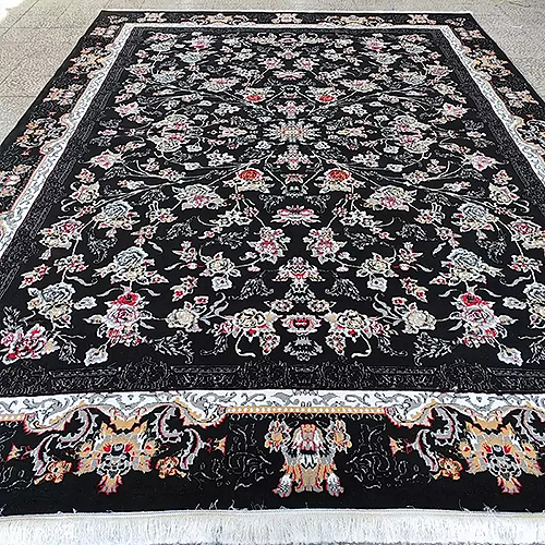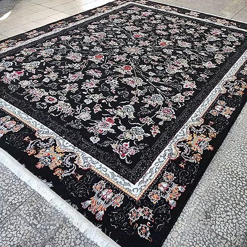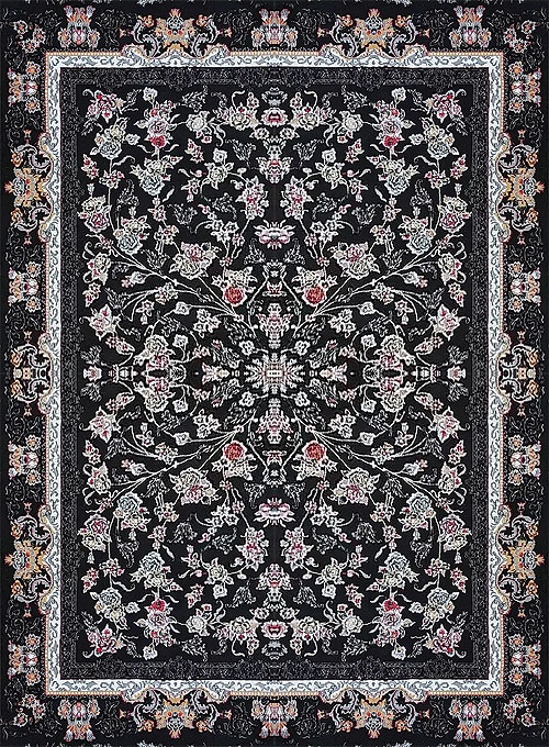 فرش کاشان 500 شانه طرح جانان زمینه مشکی (غیربرجسته)