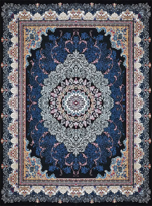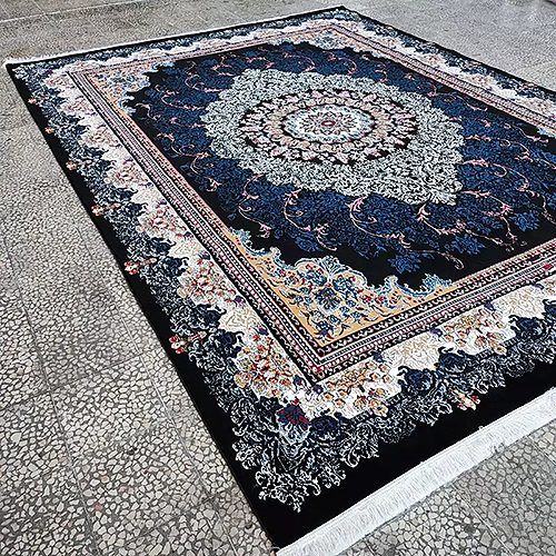 فرش کاشان 500 شانه طرح دلاریس زمینه مشکی (غیربرجسته)