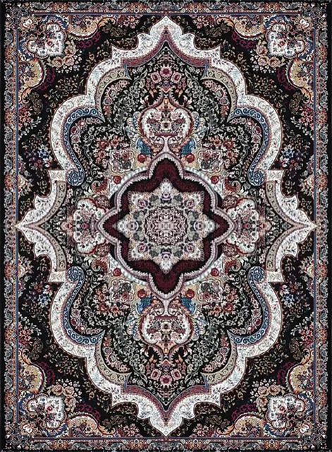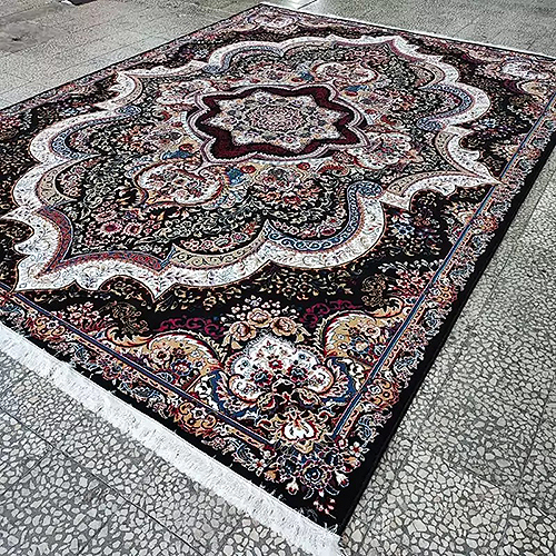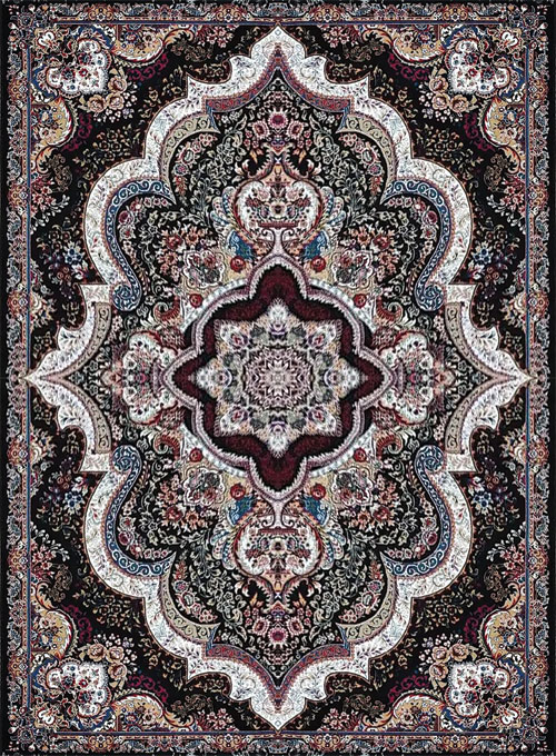 فرش کاشان 500 شانه طرح شهیاد زمینه مشکی (غیربرجسته)