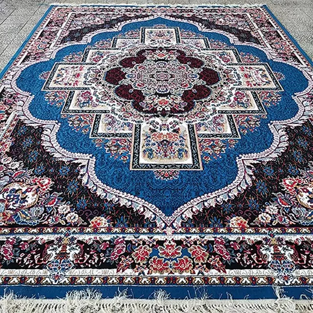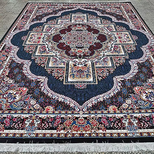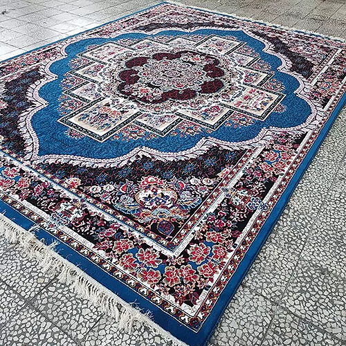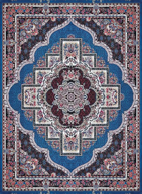 فرش کاشان 500 شانه طرح ناردون زمینه آبی (غیربرجسته)