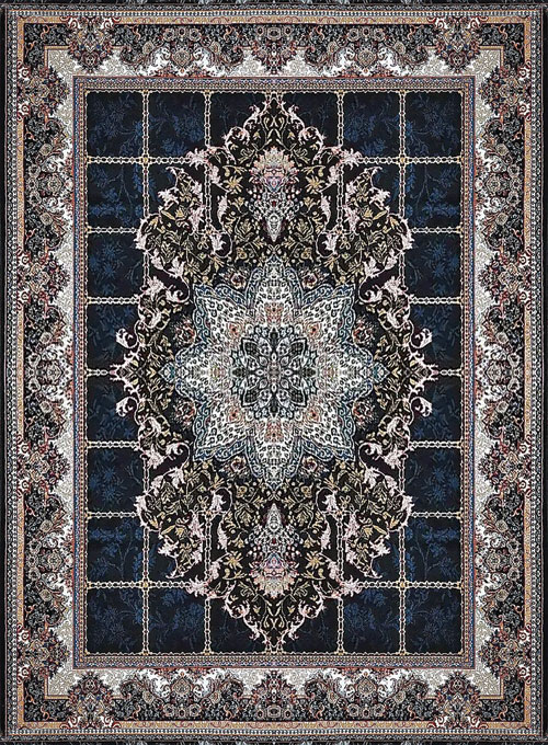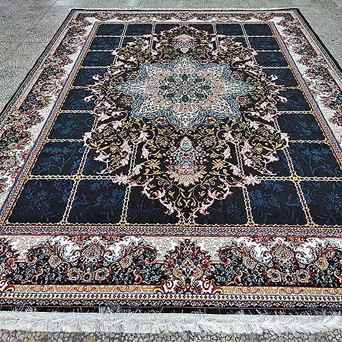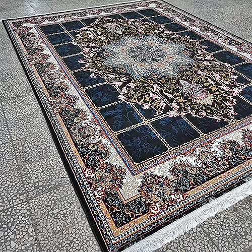 فرش کاشان 500 شانه طرح هیوا زمینه مشکی (غیربرجسته)