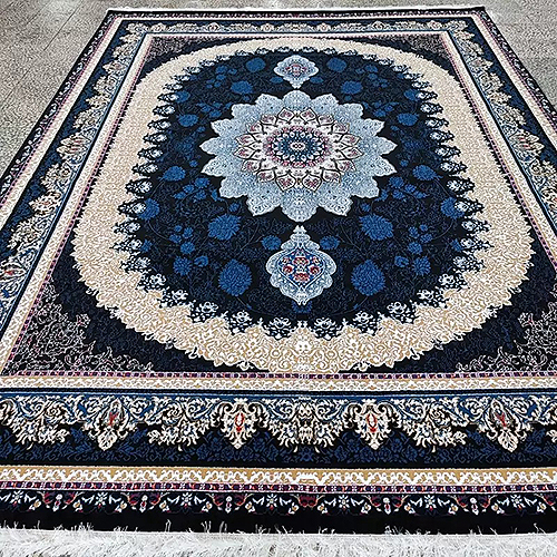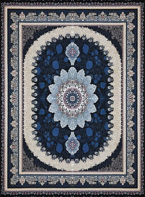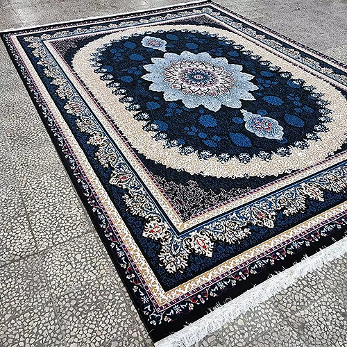 فرش کاشان 500 شانه طرح گیتا زمینه سورمه ای (غیربرجسته)