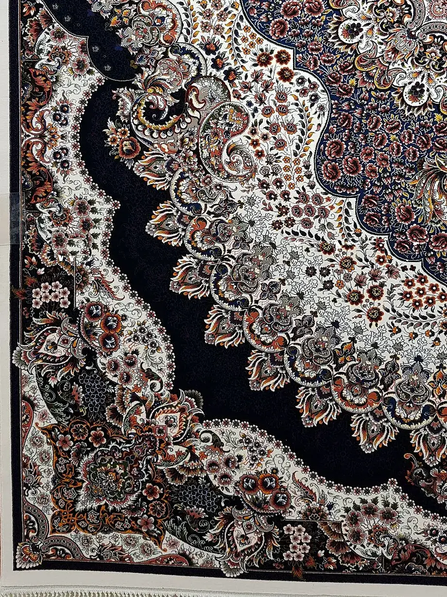 فرش کاشان 700 شانه طرح ارکیده زمینه سورمه ای (غیربرجسته)