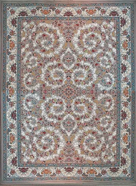 فرش کاشان 700 شانه طرح افشان شاهان زمینه فیلی (غیربرجسته)