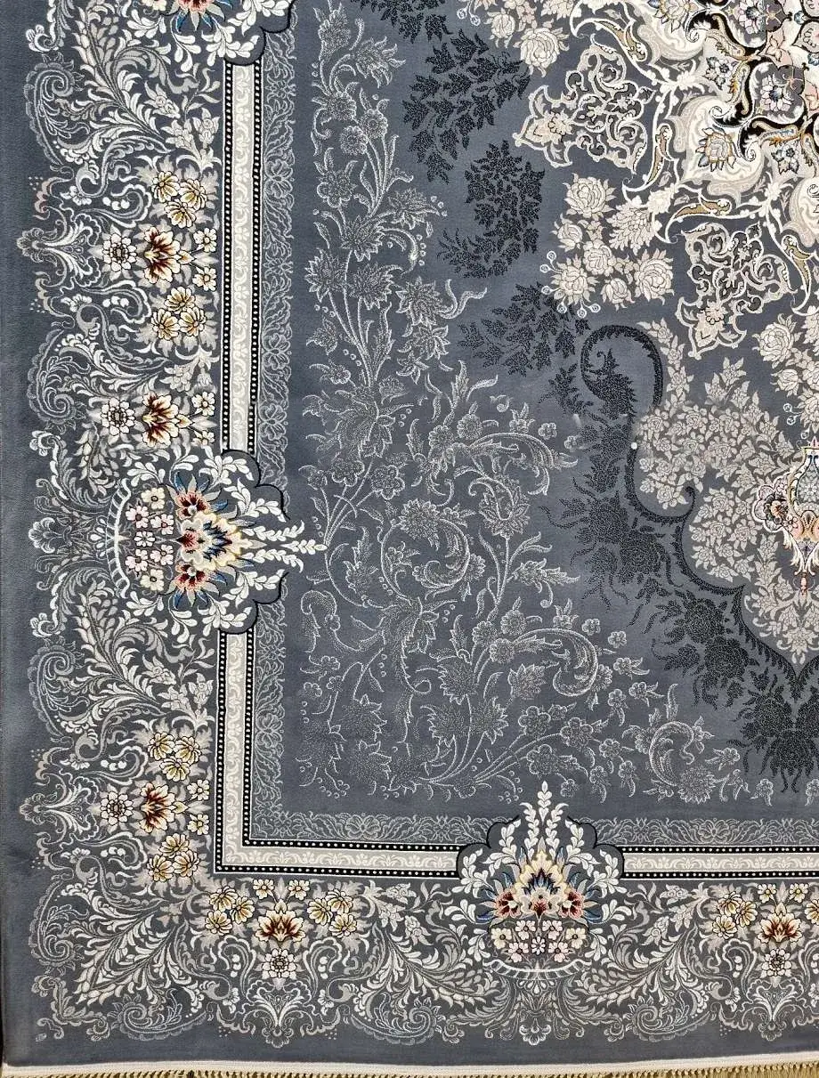 فرش کاشان 700 شانه طرح دنیز زمینه دودی (غیربرجسته)