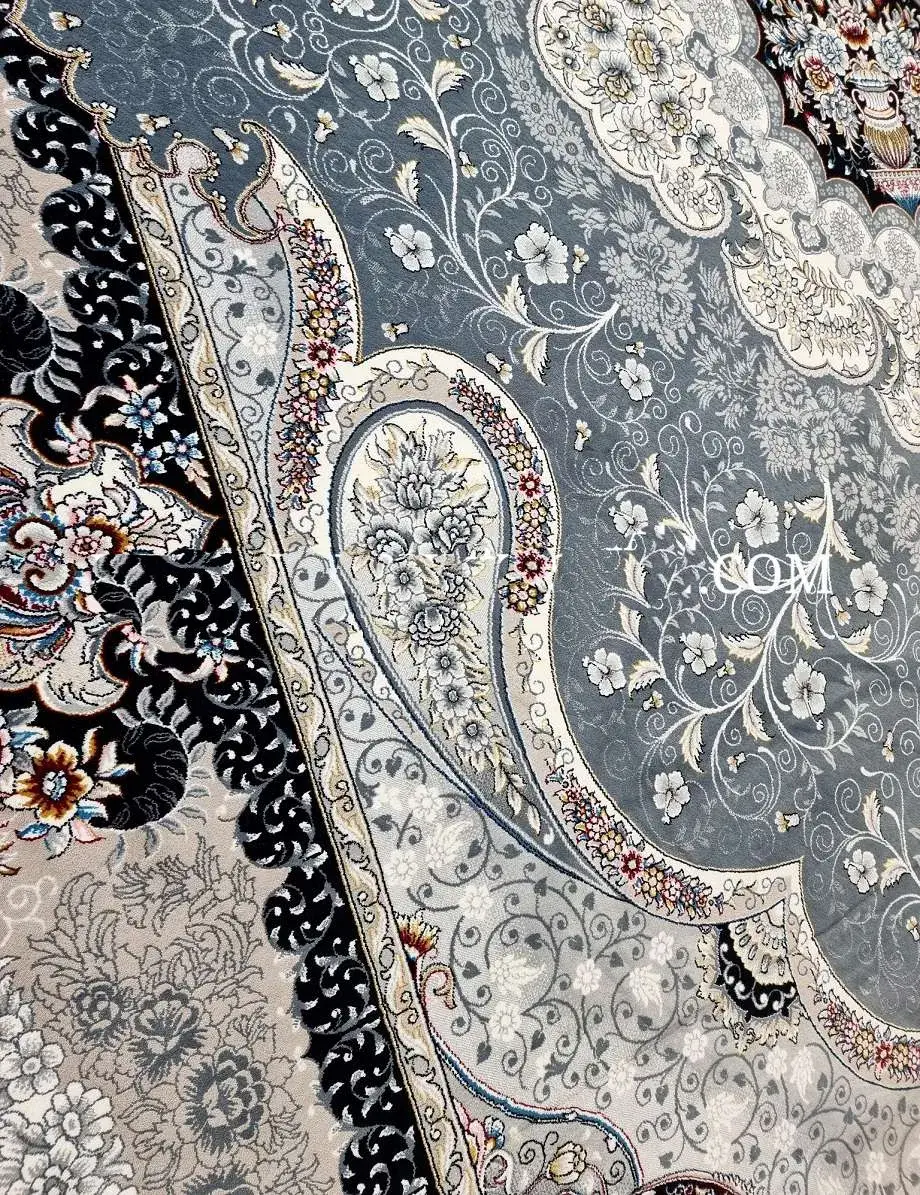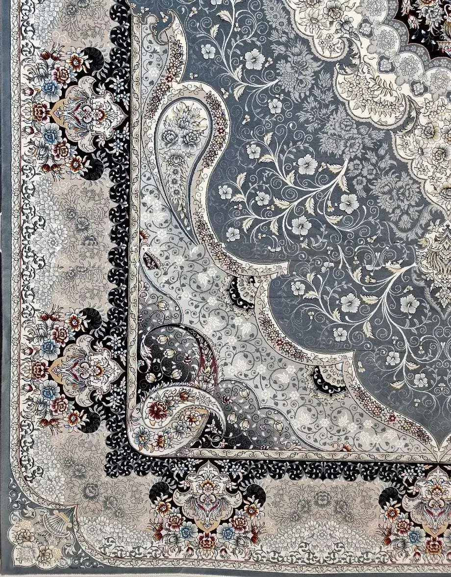 فرش کاشان ۷۰۰ شانه طرح سوگند با تراکم ۲۵۵۰ | وقار و آرامش ماندگار در رنگهای نقرهای، دودی و کرم چرک