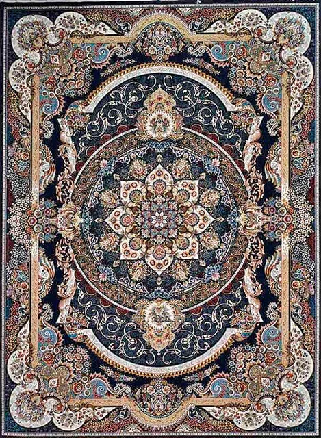 فرش کاشان 700 شانه طرح مانا زمینه سورمه ای (غیربرجسته)