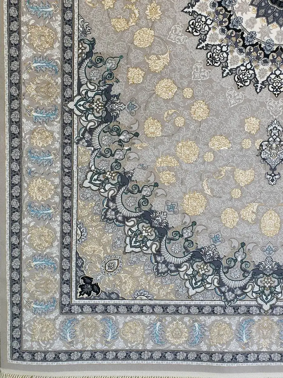 فرش کاشان 700 شانه طرح نایین زمینه نقره ای (غیربرجسته)