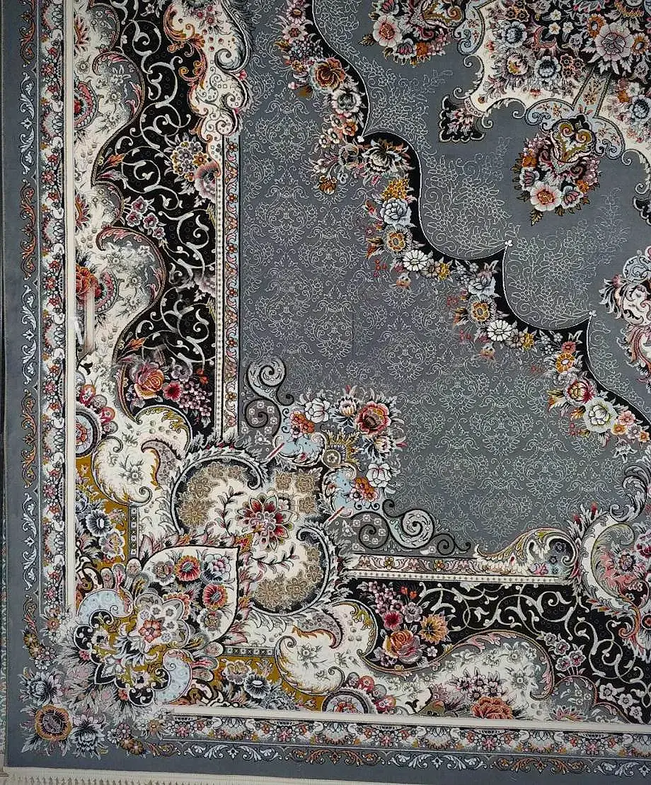 فرش کاشان 700 شانه طرح نیلوفر زمینه دودی (غیربرجسته)
