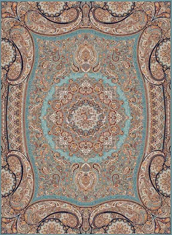 فرش کاشان 700 شانه طرح پارادایس زمینه آبی (غیربرجسته)