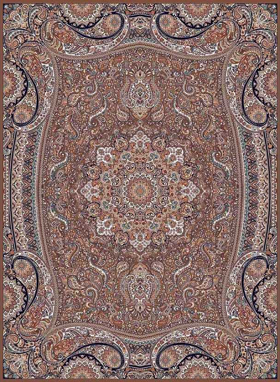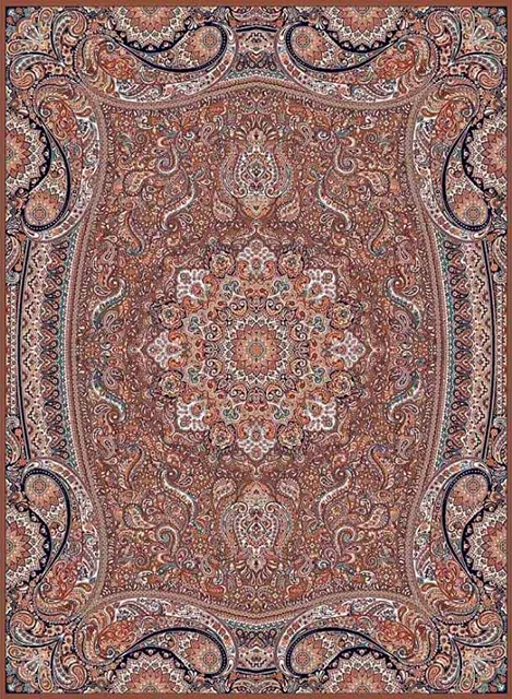فرش کاشان 700 شانه طرح پارادایس زمینه گردویی (غیربرجسته)