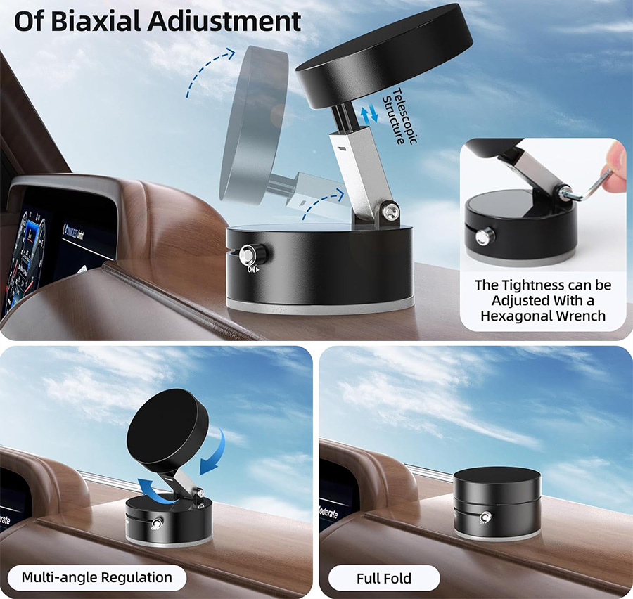 اگر به دنبال یک هولدر مگنتی موبایل هستید که در عین طراحی ساده و شیک، وکیوم بسیار قوی و پایداری عالی داشته باشد، هولدر مغناطیسی موستانگ انتخابی فوقالعاده برای شماست. این هولدر با بهرهگیری از تکنولوژی وکیوم و آهنربای قدرتمند، موبایل شما را حتی در مسیرهای پر دستانداز ثابت نگه میدارد. با قابلیت تنظیم درجه، راهکاری ایدهآل برای ثبات و امنیت گوشی شما در حین رانندگی است. نصب آسان، چسبندگی قوی و امکان تنظیم زاویه دلخواه، این هولدر را به انتخابی بینظیر برای تجربهای راحت و ایمن تبدیل میکند. این هولدر با ترکیب تکنولوژی مکش خلاء و جاذبه مغناطیسی، راه حلی ایده آل برای استفاده چندمنظوره روی سطوح مختلف ارائه میدهد. طراحی زیبا، عملکرد پایدار و نصب آسان، آن را به انتخابی محبوب برای کاربرانی که به کیفیت و کارایی اهمیت میدهند، تبدیل کرده است. این محصول با تمامی مدلهای گوشیهای هوشمند اندروید و آیفون سازگار است. طراحی جمعشونده و تاشو این پایه، آن را برای استفاده در خانه، خودرو، آینه، شیشه، کاشی، میز کار، آشپزخانه و حتی تجهیزات ورزشی به گزینهای بیرقیب تبدیل کرده است. کافیست آن را به سطحی صاف بچسبانید و از آزادی عمل کامل در زاویه دید لذت ببرید.