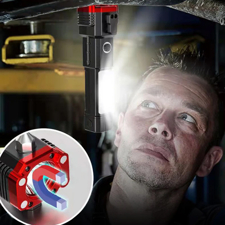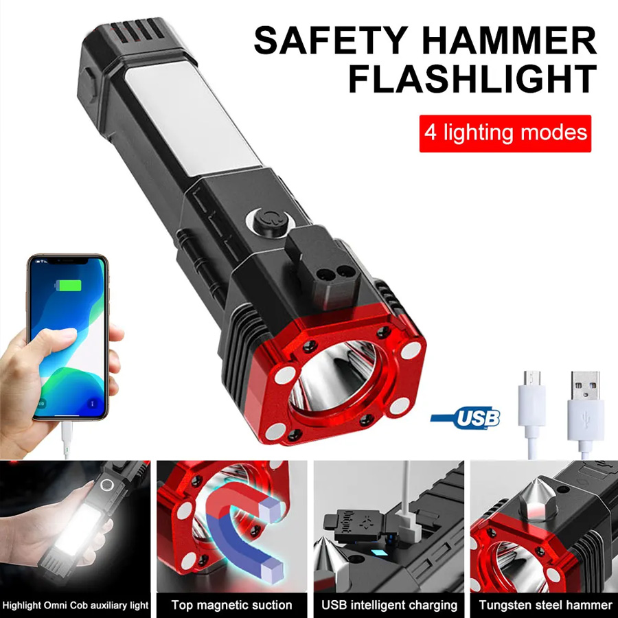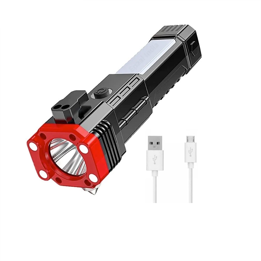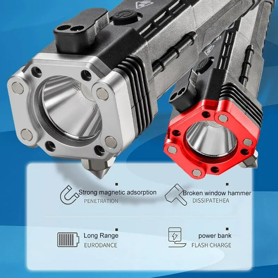 چراغ قوه دستی 8 کاره مدل led torch با قابلیت انجام کارهای فراوان از جمله: 3 حالت نور - دارای چکش اتش نشانی - دارای تیغ مخفی برای بریدن کش و طناب - دارای مگنت اهن ربا برای چسبیدن به اهن و تعمیر خودرو - قابلیت استفاده بعنوان پاور بانک در مواقع اضطراری - قابلیت شارژ شدن توسط شارژر موبایل میباشد. این چراغ قوه پر کاربرد وسیله ای عالی برای مسافرت و کمپینگ و نگهداری در خودرو است و داشتن ان میتواند بسیار به شما کمک کند.