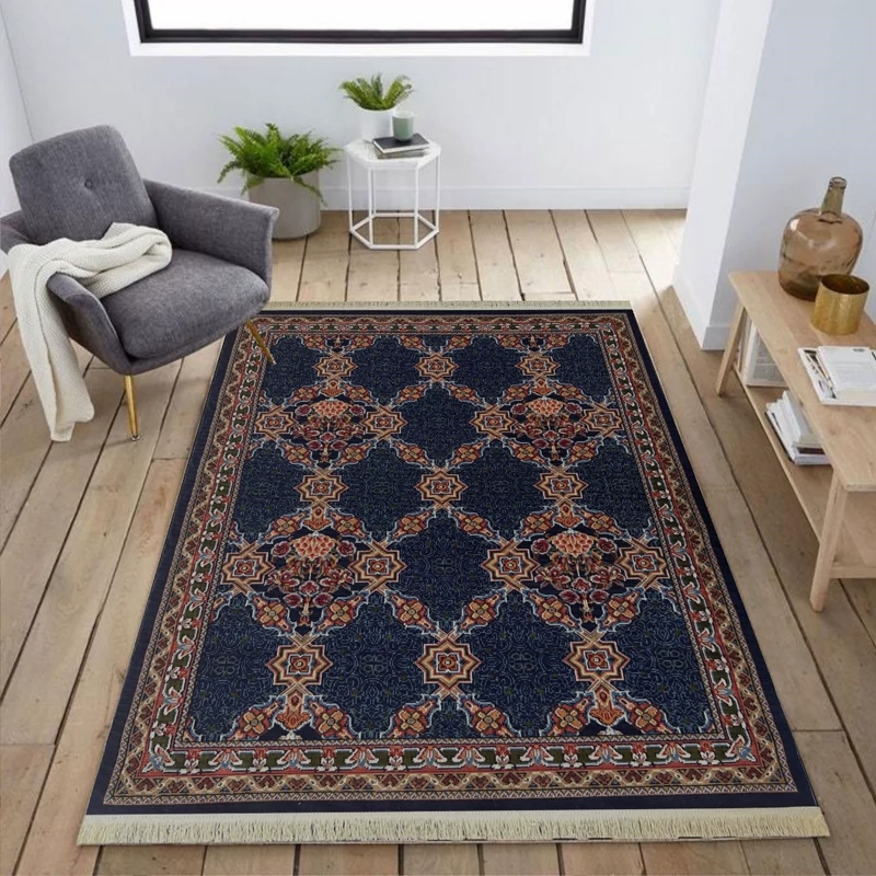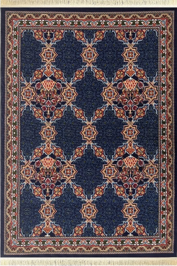 گلیم ماشینی جزیره طرح بوته زمینه سورمه ای (غیربرجسته)