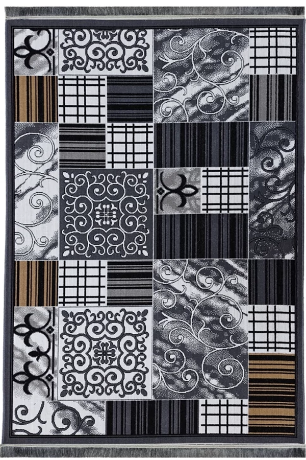 گلیم ماشینی جزیره طرح ساوین زمینه دودی (غیربرجسته)