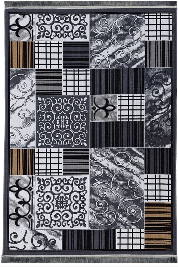 گلیم ماشینی جزیره طرح ساوین زمینه دودی (غیربرجسته)