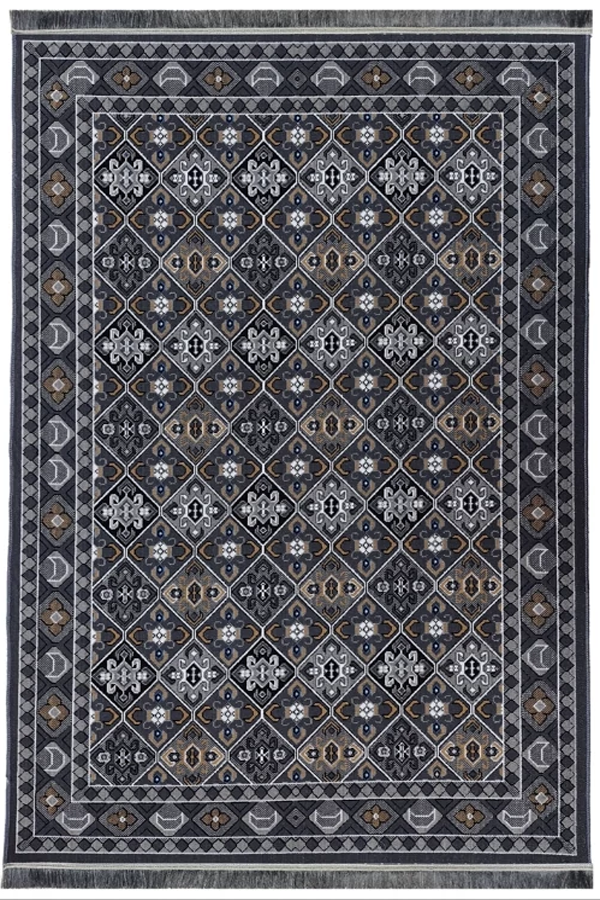 گلیم ماشینی جزیره طرح مرجان زمینه دودی (غیربرجسته)
