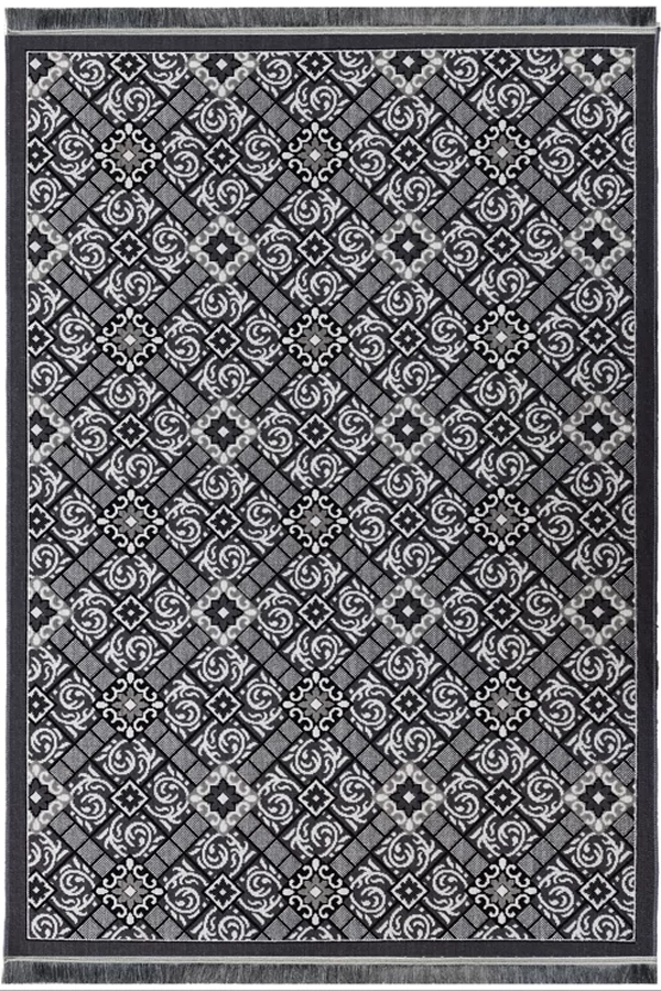 گلیم ماشینی جزیره طرح نگین زمینه دودی (غیربرجسته)