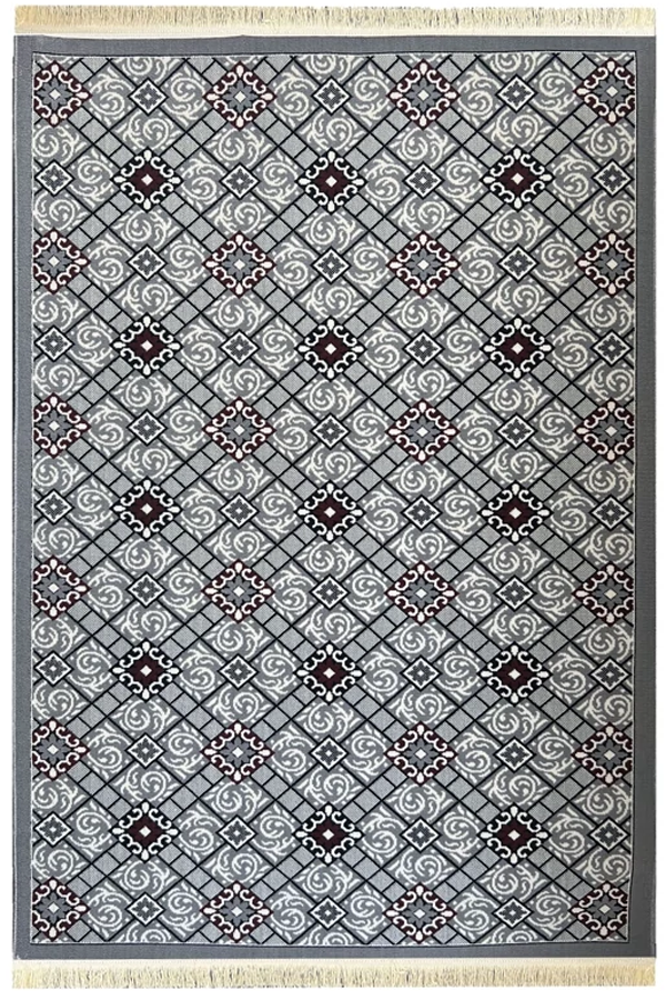 گلیم ماشینی جزیره طرح نگین زمینه نقره ای (غیربرجسته)