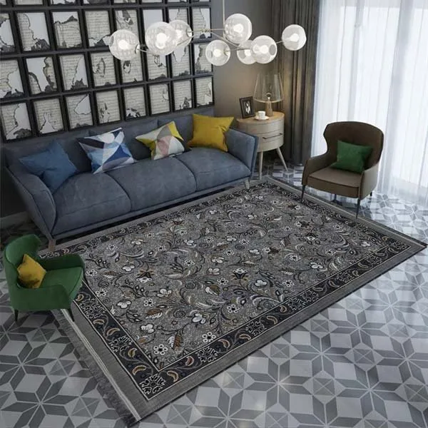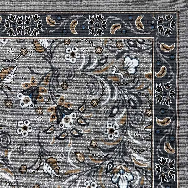 گلیم ماشینی جزیره طرح پیچک زمینه نقره ای (غیربرجسته)