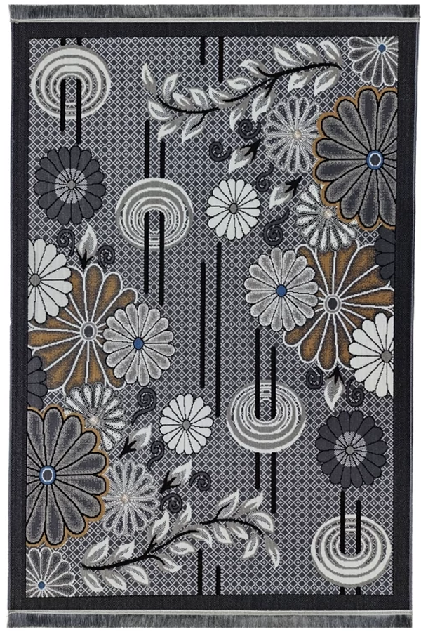 گلیم ماشینی جزیره طرح گلستان زمینه دودی (غیربرجسته)